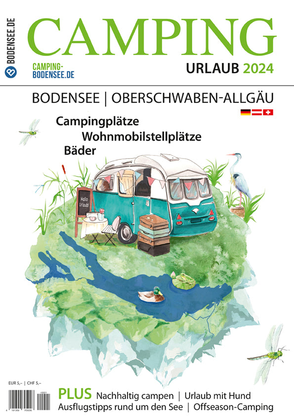 Labhards „CAMPING Urlaub“ 2024 führt zielgerichtet und informativ zu den besten Campingplätzen rund um den Bodensee, im Allgäu und in Oberschwaben und legt dabei großen Wert auf Nachhaltigkeit und sanften Tourismus. Als Orientierungshilfe sind besonders umweltbewusste Campingplätze mit dem ECOCAMPING-Logo gekennzeichnet. Neben einer umfassende Aufstellung der Wohnmobil-Stellplätze rund um den See und den schönsten Strandbädern gibt es viele redaktionelle Hinweise und Tipps für erlebnisreiche Ausflüge, Fahrradtouren, Urlaub mit Hund, Familienferien, Wassersport, Off-Season-Camping u.v.m.